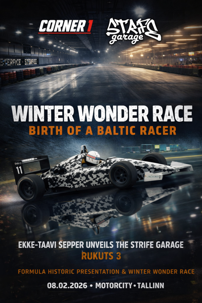 Winter Wonder Race: Birth of a Baltic Racer on ühepäevane erisündmus, mille keskmes on Ekke-Taavi Sepper ja Strife Garage koostöös esitletav Formula Historic võistlusauto Rukuts 3 – masin, mis kannab endas Balti vormeliehituse pärandit ja millega läheb Ekke uuele seiklusele 2026. aasta Formua Hisotric hooajal. Muidugi on sobilik, et selline uhke esitlus toimub rajal ja selleks on Motorcity. Ja kuna asi toimub rajal, siis muidugi toimub ka selle raames Corner 1 väga varajane hobikardihooaja avang. Palju mida uudistada, palju mida jagada. Siin on kõik, mida pead või võid päeva kohta teada. 🙂